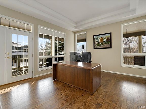 Mountains meet City! Mountain lodge style home within close walking distance central Golden. 20 min to Boulder, 20 min to Denver, 1 hour to Skiing! Surrounded by mountain and city views. Backs to open space, steps from Mt Galbraith trailhead. Extensive wrap around covered deck, custom stamped patio & master balcony. 5 Car Garage. Custom wide plank solid oak hardwood floors throughout. Great room concept open to kitchen. Central wet bar, separate office, vaulted foyer, 4 bedrooms, 4 bathrooms, plus flex space loft. En-suite master bedroom w/ sitting area, and separate his and hers walk-in closets. Her's closet connects to master bath & has custom closet factory drawer and shelf system. Custom white plantation shutters throughout. Basement has partial finish and new carpet. All new faucets, toilets and plumbing in all 4 bathrooms and bar. Newer A/C & Furnace is only 5 years old. New counter depth KitchenAide fridge & new gas cooktop. Kitchen pantry for additional storage w closet factory system. New interior paint. New exterior paint. 5 car garage has highly durable "Ninja" brand epoxy floor. Air ducts & windows cleaned. Full professional landscaping includes low maintenance front yard and numerous perennials.