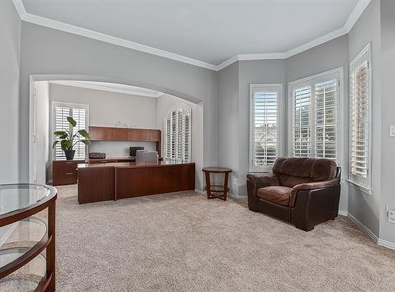 METICULOUSLY maintained home in PRIME Allen location! Beautiful curb appeal with lush landscaping on a corner lot. Open and bright floorplan with vaulted ceilings, modern gray paint, plantation shutters, and crown molding. Formal living and dining off the entry offers flexibility to use as study. Hardwood floors at entry run throughout the living area and kitchen. Kitchen with stainless steel appliances and island with smooth cooktop overlooks the eating area and spacious living area filled with natural light and beautiful fireplace with extensive trim molding. Large master BR down with updated master bath that includes frameless shower door enclosure. Secondary BRs and large gameroom up. Pool-size backyard!