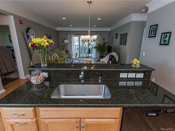 Experience luxury living in this beautiful main floor "Branford" style unit located in desirable Rivington. Enjoy all the resort like amenities including clubhouse, indoor/outdoor pool, tennis, bocci, fitness center, media room, sauna and walking trails. Great location minutes to Mill Plain Road corridor with fine dining and upscale shopping. Super convenient west side location for commuters allowing ease of access to I-84, I-684, and Metro North Train Station. Other area attractions include top rated public golf course,entertainment venue and parks.Move right into to this tastefully appointed residence with anopen concept living space.The home offers hardwood flooring in kitchen, living room and dining area. Updated modern kitchen with granite counter tops and tile back-splash. 9' ceilings, crown molding, patio, efficient gas heat & central air. Plenty of parking for your guests. No stairs! Lots of value in this home.