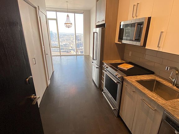 Freshly painted chic high-rise apartment with new appliances and luxury amenities. Lots of storage. Amazing view. Free Starbucks, top of the line workout facilities, beautiful lounge with free wi-fi, tennis courts, newly updated pool deck and dog park. Apartment includes 1 dedicated parking spot at no additional charge. Tenant pays rent + Electric monthly. All other utilities covered by the HOA and paid for by the owner. Move in by April and receive 1 mo of free pizza! Owner pays for HOA. Renter pays Electric only. 1 small(under 35lb) dog ok with $500 deposit. Corporate lease ok. Deposit(s) and 1st mo rent due on signing. Move in by 4/1/22 and receive free pizza for 1 month.