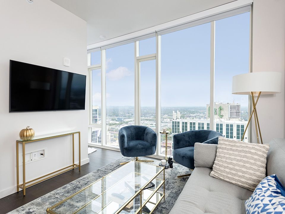 Move-In Ready, One-Bedroom on the 36th Floor w/ 1 Parking Spot Included! Enjoy Sweeping Vistas of Nashville with Wall to Wall Windows & Eastern View! Live in the Heart of Nashville w/ Immediate Access to Many Local Favorites! California Closets & Stackable Washer/Dryer! Owners Enjoy Access to Level 8 Amenities that Include and Owner's Gym, Living Room and Conference Room plus Included Access to Level 7 Amenities, Pools, Tennis and More! Fully Furnished for $1995 per month.