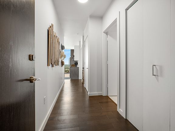 Northwest-facing corner with vibrant sunset views of the city and a private balcony. This residence boasts floor-to-ceiling windows on two entire walls. The kitchen is open to the living space with gas range island. The bedroom flows to a walk-through closet and bathroom.