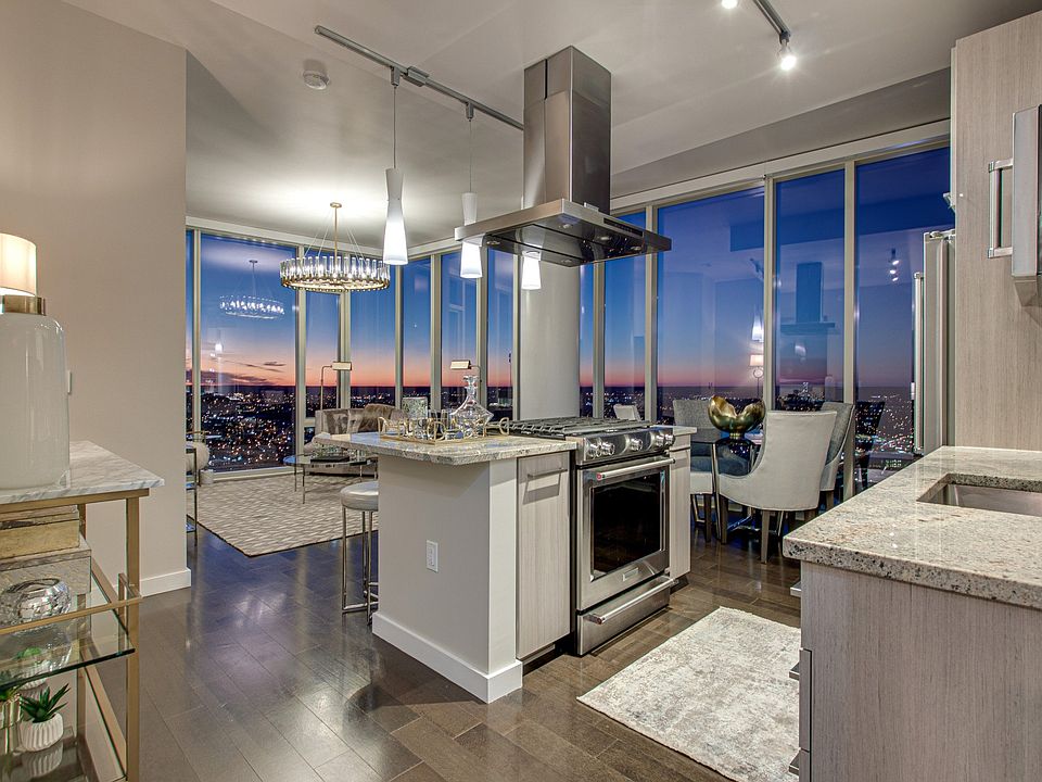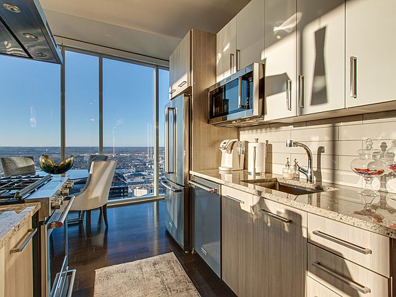 FURNISHED FOR $3,600/MO. ; Highest corner 1 BR in the city. Live 463 ft. in the sky with dramatic, unparalleled views to N & W. Sunsets, Cumberland River, year-round fireworks at First Tennessee Park, and the picturesque rolling hills of Middle Tennessee. Gas Range *Custom California Closets * Automated Shades * Balcony * Bar Area * Hardwood throughout * Cable & Internet incl. Amenities: dog park, two pools, private cabanas, fire pit, grills, tennis court, pickle ball court, fitness, etc.