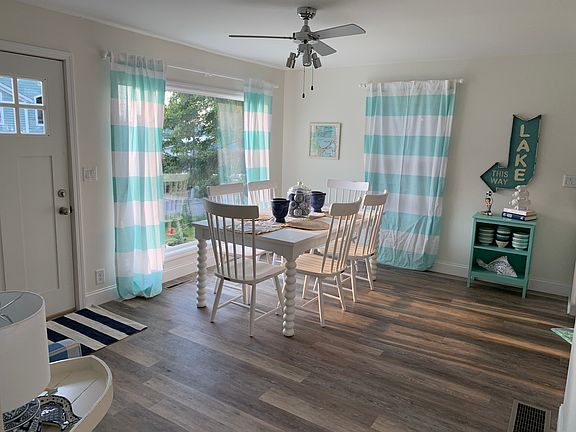 Move in ready and updated Pine Lake Cottage with lake rights and access to private association beach. Beautiful views with new windows and doors. New siding, masonry, insulation, and drywall. Electrical and plumbing was recently updated. Floors are luxury vinyl perfect for lake living. Quartz counter tops throughout with high end glass subway tile. Kitchen sports brand new cabinetry with attached bar for an open concept design. The house has two bedrooms with spacious, walk-in closets. The closets are fully customizable. There is one full bath and a half bath that is also a utility room. The house has a crawl space with no moisture/or water concerns. AC/Heating unit was inspected and works great. The garage is spacious with brackets for kayaks. There is also a great covered entertaining space in the back yard. This area is quaint and perfect for someone looking to enjoy life on Pine Lake!