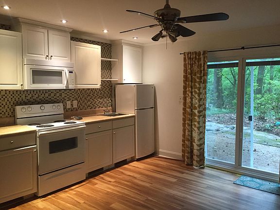 Cozy one bedroom apartment with view of Pea Creak and the Eno River State Park. Private entrance and outdoor patio. Open floor plan with galley kitchen that opens into living room with built-in bookshelves and decorative fireplace. Quiet neighborhood, 10 min to Duke Hospital. Utilities included.