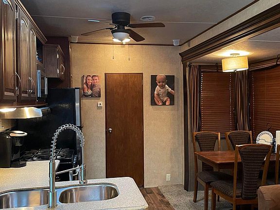 Welcome to your summer retreat! 2015 Salem Villa Destination Trailer that is ready summer fun. This nicely appointed trailer has a main bedroom with Queen size bed , lots of drawers and closets for storage, bow front windows, tv, and slide to give you plenty of floor space. It is already wired if you want to add a 2nd A/C , be careful you might have icicle in the morning. The living quarters offers richly colored wood cabinets and stainless steel range and refrigerator. Double sink and the owners are leaving everything so just bring the coffee. and donuts. A table and four chairs await the many delights you can whip up in the kitchen. A cozy fireplace that takes the chill off below your flat screen with dvd and cd player. The sofa pulls out to a double bed for those extra guests that drop by. The bunk room has bunk beds and a booth style table and chairs that drop down to make more sleeping space with a third flat screen tv. The bathroom has a nice shower/tub with a ledge to sit on, or if the kiddos like to take bubble baths. Sliders lead you to a nice ground level deck that is fully fenced in with gates to keep the furbabies in or out. the cozy outdoor furniture and cushions all stay along with the table and chairs. the stoned lot also has a shed to store all the floats and swimmies. The campground itself has a huge pool with loungers , table and chairs under an awning. You can grab some snacks at the concession stand and just enjoy the pool overlooking the lake which is easy to see with the glass fencing . The younger crowd can enjoy the kiddie slides and water slides with lifeguards stationed throughout this area. If you prefer the sandy beach and lake we have that too, bring along your kayak or use the campgrounds kayaks to sail across the lake or just hang out on your float. On the other side of the lake their is a fishing pier for catch and release and yes their are fish here. Some of the other amenities offered by campground are minature golf , adult lounge with exercise equipment, pool tables, flat screen tv's , playground, softball field, covered picnic area, and newly refinished basketball courts. Children's activities are offered along with occassional bands and dances for adults and youths. The Halloween Commitee runs candy bar bingo and adult bingo weekly during the summer season along with a few other events to support the Haunted Hayride in the fall. The campground official season is April 1 to November 1st , I'll let you in on a secret they let us come in all winter from Friday to Monday morning, that's why people keep coming back for years. Showings are available weekends only until April 1st, Then anytime.