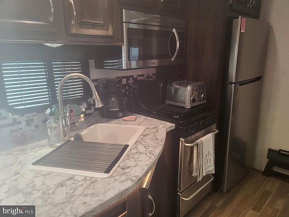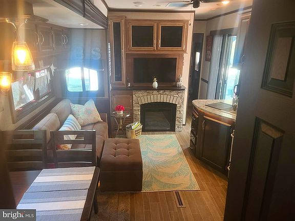 Back on the market , buyer had some finance issues. Glamping is the best way to describe this Destination Trailer! two bedrooms, your main bedroom, and a bunk room with a full bed and 3 bunks. The main bedroom has a private door to the main bath and tons of built-ins. Space for your belongings is not lacking and you can walk around the bed . The bunk room is not your usual bunkroom lots of storage and a half bath. A half bath is just another added luxury you will find. Plenty of floor space, to play games or stretch out. The dining and living room will keep[ you comfortable and part of the action to enjoy your TV or a meal. The kitchen offers stainless steel appliances and a full-size refrigerator. The outside is your entertainment oasis with a low-covered deck, hard-top gazebo, and shed.