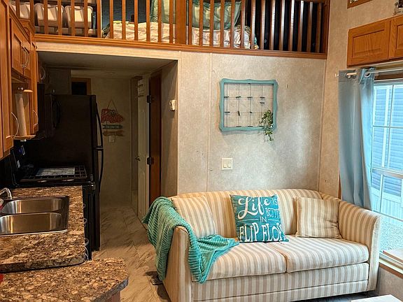 Come See This Remarkable Cottage at Lake & Shore RV Resort! Step inside this spacious and inviting cottage featuring three bedrooms downstairs and a double loft upstairs, perfect for family and friends. Enjoy the huge Florida room, ideal for relaxing or entertaining. The home includes full-size appliances and even comes with its own golf cart for easy cruising around the resort. Located in the highly sought-after Lake & Shore RV Resort, the site fee is paid through April, and next year’s annual fee is $10,044 (Thousand Trails membership required). You can host up to 10 guests for free and enjoy the April 1 – October 26 season. Plus, you can still stay Fridays through Mondays all winter long, making this a true year-round getaway! Pet friendly also!