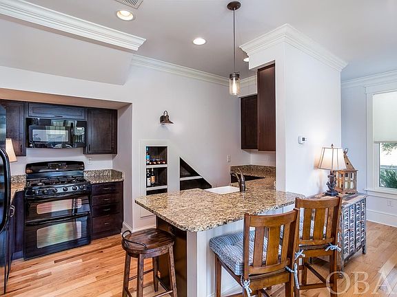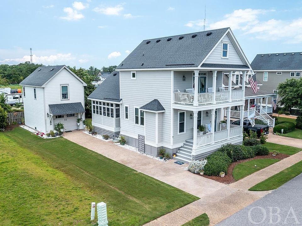 TWO FOR ONE! This beautiful coastal home is located on Roanoke Island within blocks of the Croatan Sound, historic Downtown Manteo, and a short distance from Cape Hatteras National Seashore. Enjoy the nearby ocean beaches and spectacular beauty of sunrise and sunset over the salt marshes. The property offers 1326 sq ft. in the main house (Bldg. #1) and an additional 416 sq ft. in the fully finished Coastal Carriage House (Bldg. #2) for a total of 1742 sq ft. A great opportunity for added rental income. The main house first floor features an open kitchen/dining/living room plan. The lower-level master en suite with full bath has access to large screened in porch. Gorgeous hickory floors and crown molding throughout. Kitchen has granite counter tops, Italian farmhouse sink, GE double oven, gas range, dishwasher, and refrigerator. Living room offers lots of natural light provided by the 9ft ceilings, transom windows, and gas fireplace. Second floor features an additional master suite with beautifully tiled shower, soaker tub, Kohler sink, Moen faucet/fixtures, walk in closet and large private deck with incredible views from every direction. Top level features a loft area that can be used for office space or sitting area. Upper-level laundry with GE washer/dryer and large walk in attic storage area. You will love the coastal carriage house with a private entrance located over the detached garage. This fully finished space features full kitchen with GE appliances; refrigerator, range/oven, and dishwasher, laminate wood flooring, beadboard finishes, washer/dryer hookup, and separate 3rd bedroom with full bath.