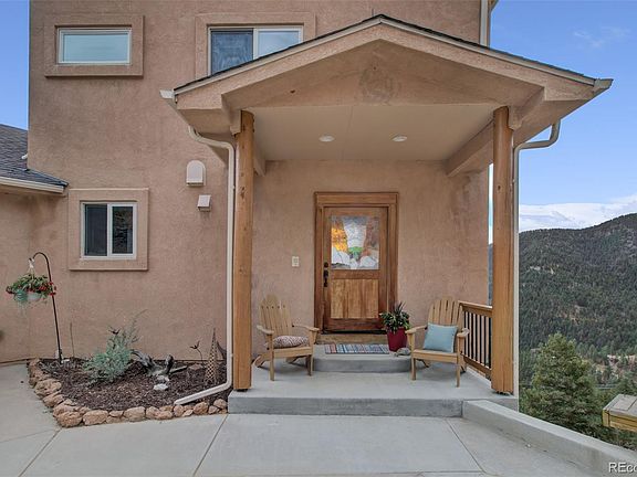 Welcome to this amazing mountain retreat located in the lower section of Crystal Park, an exclusive gated community within the foothills of Pikes Peak in lovely Manitou Springs, Colorado! This home boasts 3 bedrooms, 4 bathrooms and a 2-car attached garage, along with some of the most amazing city and mountain views in the Pikes Peak region! The home is on the end of a very private drive and as you pull up you’ll be captivated by the nature and views surrounding it! The first thing people notice is the large, paved driveway. As you enter the home you’re met with an open floor concept with recent updates throughout. The kitchen, which has porcelain countertops, a gas burning stove and matching black stainless appliances, effortlessly blends into the dining area and living room. The living room has a gas burning fireplace surrounded by a large stone mantle and custom built-ins made right in Crystal Park! The dining and living room both have walk outs to the large wrap around deck. The main level also has a laundry room, garage access, and a conveniently located half bathroom. The upper level features a loft-bedroom, full bathroom and walk-in closet. The lower level has the spacious, BEAUTIFUL primary bedroom! This bedroom has a more than ample walk-in closet, en suite 5-piece bathroom and a walk out to its own private deck with an in-deck hot tub! The en suite bathroom has a custom and large stand in shower, a jetted soaking tub and a dual vanity with granite countertops surrounded by custom tile flooring. On the lower level is the 3rd bedroom. This comfortable and private bedroom has a walk-in closet, a 3/4 bathroom and its own walk out to a private deck. Upgrades include: a Radon system, Hot tub (6 years old), new joists and posts for the main level deck, solar (paid),220V EV charger, and many additional areas of the home addressed. Don't miss seeing this amazing home!