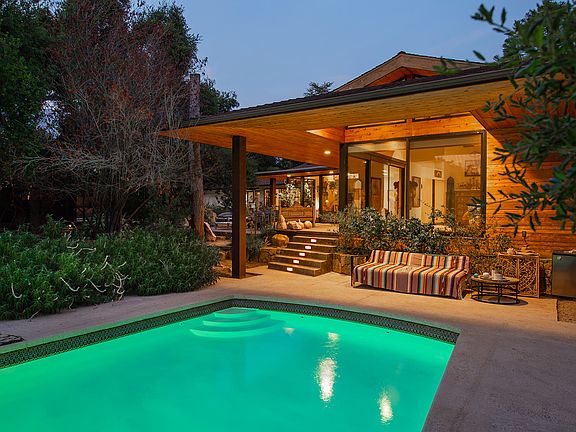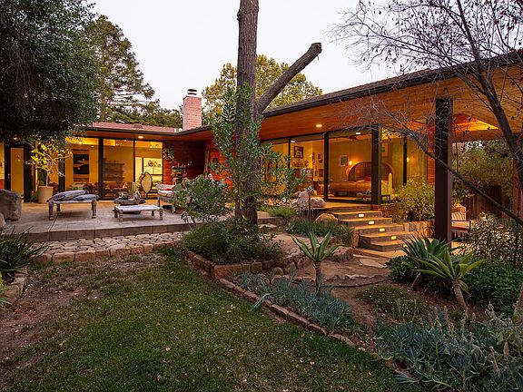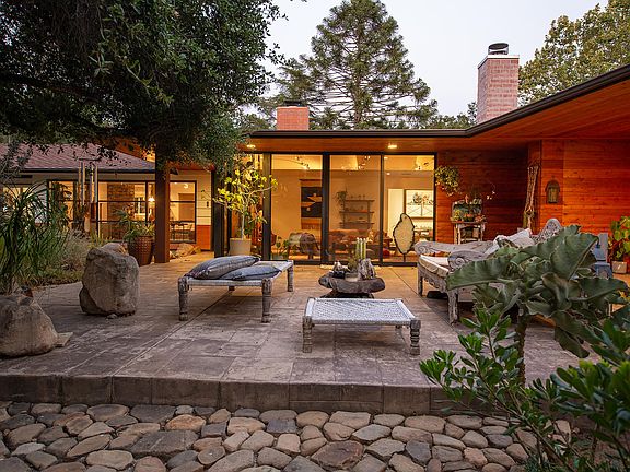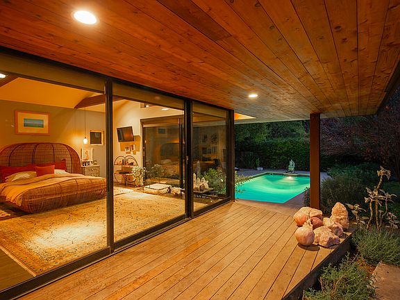 Tucked into the hillside of downtown Ojai, CA is this midcentury ranch house that offers indoor-outdoor living with floor-to-ceiling windows that look out onto the one acre plus property. The current owner has created a slice of Zen countryside in the middle of Ojai, one that boasts clean lines, a chef's kitchen with top-of-the-line stainless steel appliances, open spaces, and natural materials like concrete floors, unstained wood trim, along with Fleetwood glass doors that floods the space with natural light. The serenity evoked by the meticulously kept private grounds, complete with a detached guest house with a separate entrance, vintage barn with a loft, Japanese-soaking tub, sparkling swimming pool and neighboring horse pasture makes one feel decidedly outer Loop. The whole property feels more like a compound. This peaceful refuge is nestled under Heritage Oaks, making it the perfect combination for one's life balance. Simply a MUST SEE.