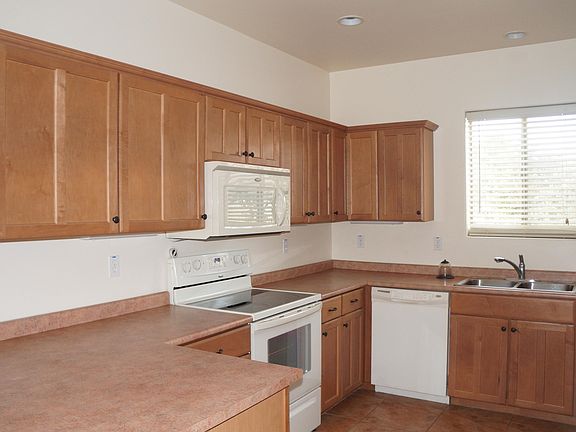 Easy care Territorial Style home in Pleasant Valley. Just available is the 3BD 2BA split floor plan w/ a very generous kitchen. Tons of cabinets, all appliances to remain. Master has an exit to the backyard, nice size walk-in closet, large bath w/ separate tub & shower. Double sinks w/ a toilet room, etc... Nice dining area w/ door leading to the backyard as well. Nice size living room w/ 2 additional bedrooms just down the hall. Guest bath has tub/shower combination, tile surround + linen storage. Inside laundry room w/ storage. 2-Car garage w/ back roll up door. Neutral tile throughout w/ carpeted bedrooms. 5Yr. warranty on the newly coated roof! Great neighborhood for walking into town, school, etc...Call to see this home today!