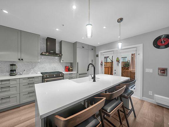 Welcome to the The Trails . This 3 bed 2.5 bath + Office home feels like a house, w/ own Private Garage and Storage Room, a mudroom/foyer, 2 entrances. French doors lead from the large patio to the chef styled kitchen boasting a 30" convection oven & gas range w/ hood fan, 30" integrated refrigerator, stylish cabinetry quartz counters and an apron-front ceramic sink . With a premium appliance package. Heated floors in the full bathrooms and a dedicated office for working from home. The expansive Primary Suite is perched on the top floor and includes a spa like ensuite, 11' ceilings and patios. Located steps to Spirit Trail and Lonsdale and all the shops, restaurants, cafes and pubs. Perfect for a family to live in a great neighbourhood.