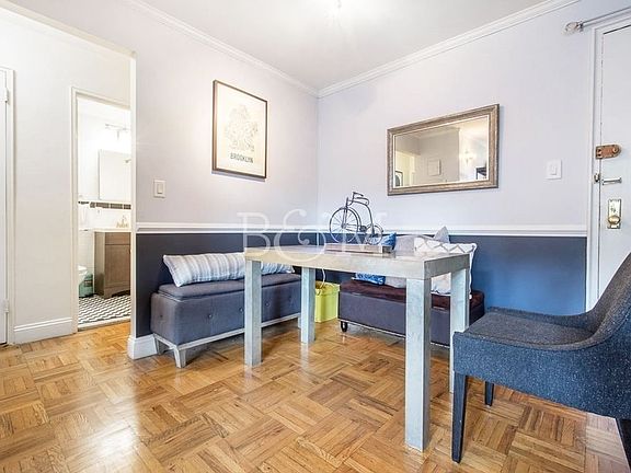 Our thoughts: This spacious, second floor, 1 bedroom coop is move-in ready. It boasts a well designed layout that separates the kitchen, dining area, and living room from each other, with each area receiving ample natural sunlight. The separate kitchen has rich, dark granite countertops, and ample cabinet space, with a beautiful framed pass-thru, creating a friendly environment that allows guests to keep the conversation going while you cook. Upon heading towards the bedroom, you will find several closets and the spacious bathroom. Of the 5 closets found in this home, note that 2 are walk-in closets. The bedroom itself is quite large, and able to comfortably fit a king size bed, with bedside tables, and also a dresser & small desk. The home is cooled by thru-wall A/C units, and heat and hot water are included in the maintenance fee. Additional updates include custom lighting, with dimmer controls, custom designer paint, and an Elfa shelving system. Situated on the corner of Cortelyou and East 7th Street, The Manchester is only a short 10 min walk or less to the F and Q trains as well as the BM1234 and B103 express buses. This location puts you where you want to be in Kensington/Ditmas park. Just 5 minutes from the front door residents can discover unique nightlife, such as Bar Chord, grab brunch at the Farm on Adderly or Leas, and go grocery shopping at 3 nearby supermarkets (lets not forget about the weekly Farmers market). For those who cant get enough greenery, a 5 minute bicycle ride will get you to Prospect Park!