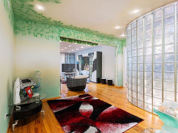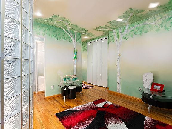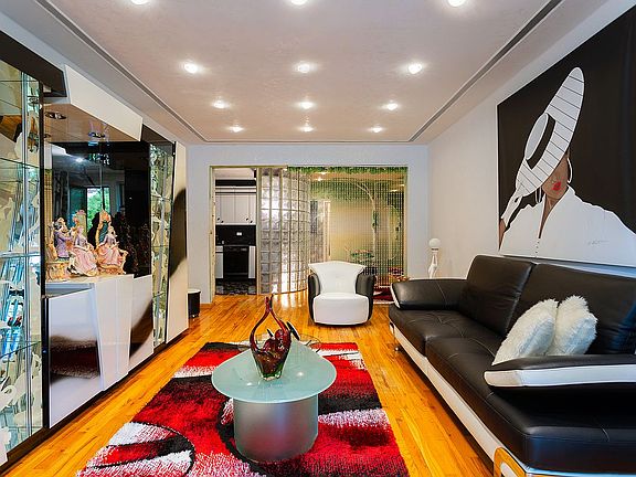 A usable foyer with a double-closet leads you to a generous living room that exits to a deep and wide balcony that can accommodate a dining table and chairs. The bedrooms are of generous size (the 2nd bedroom is currently used as a dining room, but no structural changes are needed to start utilizing it as a bedroom again). The windowed eat-in kitchen was tastefully renovated in black and white finishes, and it offers generous quartz counters, and ample cabinetry. The main bathroom was nicely renovated and tiled, and the 2nd bathroom is not currently being used due to low occupancy in the apartment. The bold and original design choices of the wall and ceiling colors you can observe in the photos can be made neutral in a blink of an eye by a skilled painter. You will appreciate hardwood floors throughout this home, and generous closet space.