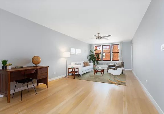 SUPERB 2 BEDROOM CONVERSION - This top floor unit is almost loft-like with its expansive open living/dining space that spans almost 40 ft. Coupled with an open oversized kitchen, this apartment is made for entertaining, (remember that?). Completely renovated and smartly laid out, this converted 2 bedroom unit is move-in ready, whether you need just a separate home office or even a second sleep space/ guest room- now that folks can visit again. A bright corner unit located on the top floor with eastern & southern exposures , the natural light is abundant. The windowed kitchen has tons of storage, endless quartz counter space, a huge sink with filtered water, stainless appliances including a dishwasher. The bathroom is also equipped with a window and good storage as well. The white oak flooring has been recently rebuffed, and the entire apartment freshly painted. Upon entry, there is a huge walk-In closet which is basically an additional room in itself. Both bedrooms have separate entrances, a window and a big closet. This unit is a great value in a great building. A must-see! The Manchester is one of Kensington's most desirable post-war coops. What other building has such a large green outdoor space it has been called almost "private park" like, and an indoor parking garage list so small, you might have a spot the day you close? This of course is all in addition to what these days are the norms: 2 updated elevators, new central laundry, additional storage & a bike room. The building also boasts a full-time super who is not only skilled and on top of repairs, but actually friendly, in addition to a full time porter who keeps the building immaculate. The Manchester is a financially sound coop with a new roof, new windows, and a new boiler. Located just off Cortelyou, it is just 3 blocks from the Ditmas Park Strip of great restaurants, bars, cafes and a weekend farmer's market. Public transportation options offer the Q, B, F & G trains nearby and many express buses. Prospect Park is a short walk away. Cats are permitted, sorry No Dogs
