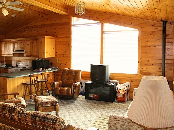 - Interior Features: Flooring- Carpet, Ceiling Fans, Window Coverings, Wheelchair access, Flooring- Vinyl, Pellet Stove