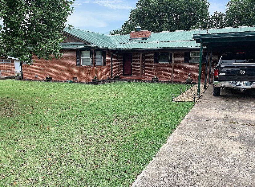 This open floor plan home has 3 bedrooms & a Jack & Jill bathroom. Updates include: countertops and hardwood floors in kitchen & dining room and carpet in living room; hot water heater 2021; A/C condenser 2017; fresh paint inside and out and some trim has been replaced. The home has a metal roof, 2 car attached garage as well as a carport for your auto storage, and a storm shelter. The larger backyard is fenced in and has a patio for entertaining outdoors. This won't last long in this market!!