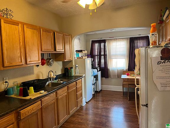 Spacious 4+ bedroom, 3 bath home , with beautiful original woodwork, oak floors, french doors, window seat and fireplace. Formal dining room plus Eat-in-kitchen full finished basement. Located right next to the University of South Dakota and Vermillion's beautiful downtown. Large front screen porch. Property is now currently a rental with great rental history.Freshly painted interior and refurbished hardwood floors.