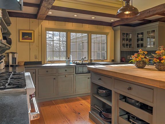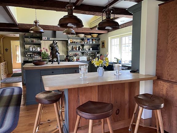 “Peter Hayward Tavern” Circa 1764 A treasure in Surry, NH and Keene, NH situated on 191 acres. The main house and barn and 140+- acres in Surry and 50+- acres in Keene. Most of the land is in current use and conservation. Amazing setting across from Brentwood golf course and within walking distance to Goose Pond Recreation area. The main house is a center chimney cape with an ell which has a half bath and an office and a lovely large window with views of the barn. The mammoth center chimney around which house is built has 5 separate flues leading from the 6 fireplaces. Original woodwork, wide 25” paneling, and finely crafted arched woodwork surrounding the fireplaces. The house has been meticulously cared for and updates retaining all the charm of an antique home with all the modern necessities. The renovated kitchen is a cook’s dream with large center island and top end appliances including 6 gas burner Wolf stove. The cathedral ceiling and ribbon windows add beautiful light to the kitchen. Kitchen opens to the large LR with fireplace and radiates warmth and comfort. A separate pantry room makes for great storage. A dark room in the main house for those photography buffs! Large 2 story barn with substantial workshop area and 2 bed apt, perfect for guests, rental or a caretaker. Perennial gardens surround the house and a unique inground pool with beautiful stonework fits perfectly in the setting. Large wrap around deck for entertaining.
