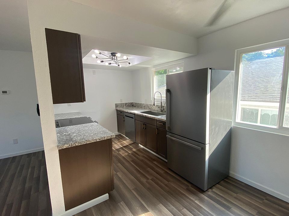 Beautifully remodeled 2 bedroom/1 bathroom available July 1. Gorgeous finishes that include, hardwood floor, new paint, new stainless refrigerator, slide in stainless stove/oven, over the range microwave, dishwasher, modern lighting, all new plumbing, new cabinets, new water softener and drinking water system (for unlimited use and paid for my landlord, shared laundry room with brand new top of the line washer and dryer. This apartment is one of two that are currently available at this property. They are part of a lovely triplex and give you a peaceful living space. Absolutely no smoking allowed. Tenants pay for electricity & gas.