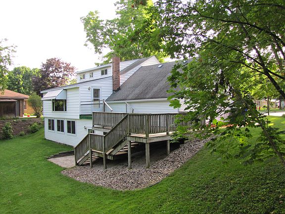 Charming, well-maintained 3-bedroom home in a quiet neighborhood with very little traffic, on Kaukauna's south side. Set on a large ravine lot (90 by 200 feet), with mature trees that attract wildlife. Watch deer and turkey from the large living room bay window that looks down over the park-like back yard. The wood deck you can walk out on from the living room has two levels, as well as a stairway leading to the lower back yard level. The kitchen has ample cabinet space with one entire wall of cabinets for your pantry. The dining room gets lots of sunlight, and has beautiful hardwood flooring. The stove and refrigerator are included. The lower level has a huge family room with large windows that also overlook the yard. A door from this room allows you to walk out into the yard or go up onto the deck. This room also has a brick wall with a masonry chimney ready for you, if you want to add a fireplace. There is a bathroom on this lower level conveniently located close to the family room. The house has a full basement as well as a unique basement room under the garage (last 2 photos). This extra basement would be a great shop area, play space, or used for storage. A fruit cellar in the basement has lots of built-in shelves. Other storage areas include a walk-in closet with built-in shelves in an upstairs bedroom, and a floored attic off of the center upstairs room, which has an easy to remove access door. The entire attic of the garage is floored. There have been lots of updates done to this house through the years and it is clean and ready to move in! The yard is an amazing place for kids to play (including a great sledding hill in the winter)!