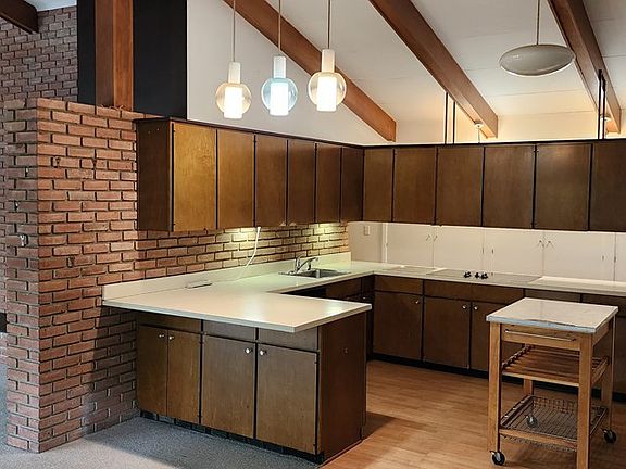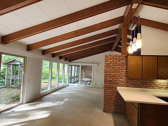 All brick California Contemporary Style in the heart of Woodland. Open beam ceilings and open, unique floor plan. Lots of natural light. 1st floor laundry and den. Two bedrooms on main floor and two bedrooms on lower level. Cool front covered porch. This home is ready for your personal touch.