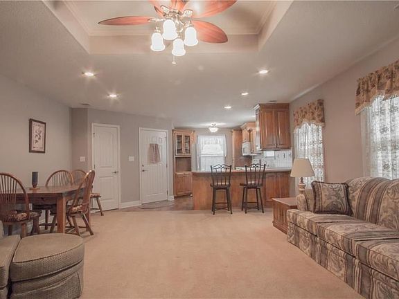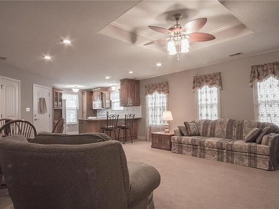 Unique, elegant and spacious. Custom trim/Cabinets/pull outs in lower cabinets and 3 pantries, one with pull out drawers. , Large master w/ sitting area and large walk in closet. Master bath has a 5' shower too. Ceiling fans throughout. Cute screened in porch, attic access for added storage. Garage has a tornado shelter for convenience, won't have to get to the clubhouse here. This home is super clean and meticulous. Fully furnished too so all you have to do is literally move your personal items in. Convenience!!!