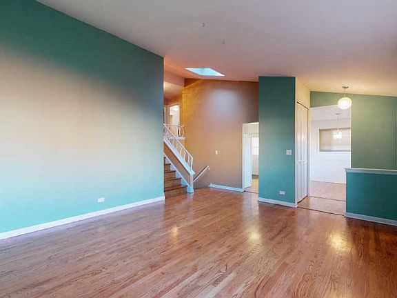 Check out the 3D tour and photos of this gorgeous tri-level townhouse, or better yet, make an appointment to see it today. This move in ready end unit has custom stained hardwood floor throughout entire home. Spacious Living room with vaulted ceilings and skylight windows. Separate dining room and large kitchen with plenty of counter space. Upper level has 3 bedrooms and 1 full bath with double sink, vanity and skylight. Lower level features a welcoming family room with fire place, half bath, separate laundry, utility room with extra storage space and laundry chute. 1 assigned parking space, plus plenty of street parking. Fully fenced backyard. Conveniently located near Milwaukee and Golf, shopping, schools, restaurants, parks, hospitals and so much more. Easy access to trains and highways. Rentals allowed. FHA Approved.