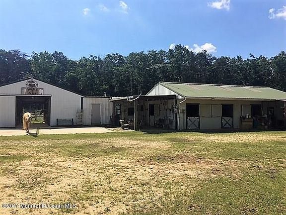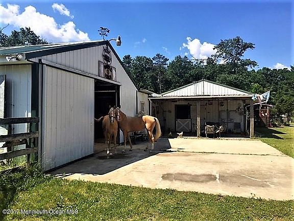 Horses, goats, cows, farming or just PRIVACY! If that's what you like, you will LOVE this place! 5.4 acres located on a quiet dead-end street, it has a cozy three bedroom, 2 bath home with large eat-in kitchen, full basement, central air, solar panels. Outside there is a detached four-car garage with electric. For your animals, there are two barns with a total of 25+ stalls, tack rooms, quarantine stalls, chicken coops, storage buildings, paddocks, riding arena, second well, all the facilities you will need for keeping your own livestock or for boarding. Central air new in the home in 2016, newer kitchen appliances, HWH. Located close to Colliers Mills, thousands of acres of preserved land for riding.