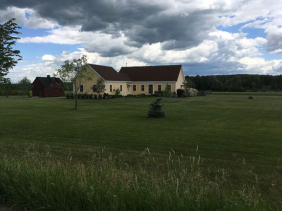 Contact owner directly (Andrew) for further information at (802) 598 9816. Viewing by appointment only with COVID 19 protocols in place. Qualified buyers only. Buyer brokers welcome. Gorgeous custom designed 1820 sq. ft. single level home situated on bucolic 10.75 acres in the Town of Charlotte, Vermont. This 3 bedroom, 2 bath, home built in 2016, features an open floor plan with custom oak flooring throughout and 9 foot ceilings. A large view Town & Country gas fireplace graces the living room area. A soapstone wood stove adds ambience to breakfast area and can heat the entire home with very little firewood due to the heat retention and release quality of soapstone. The custom kitchen, with granite countertops and quality appliances, is equipped with a pantry and is designed for the home chef. The large master suite with private bath features a Victoria Albert soaking tub and fully tiled shower. The main bath features Travertine stone accents. The deck, with maintenance free composite decking, is accessible from both the master bedroom and breakfast area. The basement is fully framed and closed-cell spray foam insulated, with heat, A/C and bathroom rough plumbing in place ready for finishing and adding the potential to double the home living space. A three car attached garage offers abundant room for vehicles and workshop area. In addition, a detached 24 x14 two story carriage house can accommodate lawn and garden equipment, an additional vehicle, and offer either additional second floor storage or home office space potential. Professional landscape design, beautiful blue stone patio, courtyard and driveway entrance hardscaping. A fenced backyard with mature perennial gardens provides restful enjoyment and safety for children and pets. High efficiency York energy system provides for heating and central air conditioning, A Rennai on-demand condensing boiler efficiently services hot water needs. A central vacuum system services main floor, basement and garage. Fiber optic communication line provides for high speed internet and phone landline. This house was built for energy efficiency, low maintenance and classic design. Lightly lived in and in move in ready condition. Great location in East Charlotte, with country views, town maintained road, and only minutes from schools, shopping, restaurants and Lake Champlain beaches and boating.