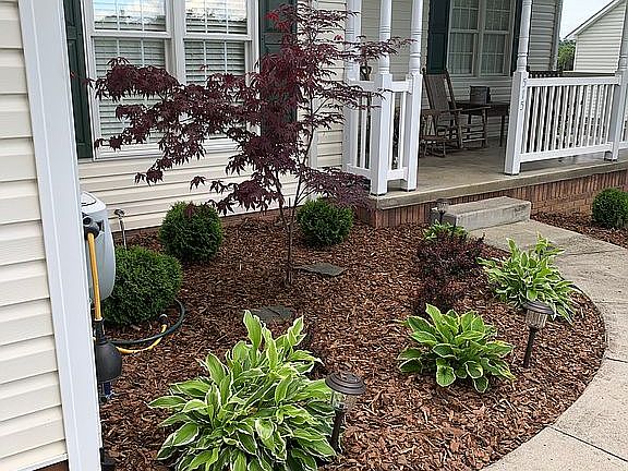 This beautiful home has been gently loved and is definitely move in ready with fresh paint, new carpet, and gleaming hardwoods. It is convenient to everything and has no city taxes! The kitchen is complete with granite counter tops, stainless appliances and a bay window so you can enjoy the view while you enjoy your meal. Spacious master bedroom with tray ceiling and lots of natural light. Walk in closet with plenty of shelving. If you have a growing family the full unfinished walk out basement is stubbed out for another bathroom and has its own electrical sub panel so it can easily be made into finished living space.ONE LEVEL, 3 BEDROOM, 2 BATH, 2 CAR MAIN LEVEL ENTRY, 3 or more Cars in Basement Garage (APX 2160 SQ FT )BASEMENT, QUALITY PRODUCTS AND WORKMANSHIP. Large shade trees, floored attic space, standing room in attic , easy to finish, landscaped, plantation blinds, double vanity in master, private water closet, trey ceilings throughout including master suite. Natural gas