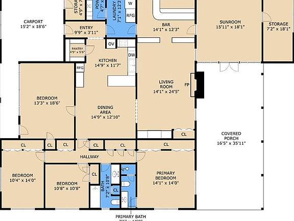 • Dimensions: 14'1" x 24'5"