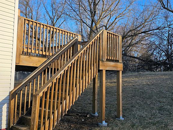 Terrific Split entry style home features new carpet throughout, open living/dining room with patio doors to nice deck overlooking private fenced yard. Master suite in lower level with huge walk-in closet, beautifully tiled master bath with whirlpool tub and separate shower. Could be 4 bedrooms - 4th just needs a closet. Great neighborhood, close to schools