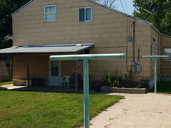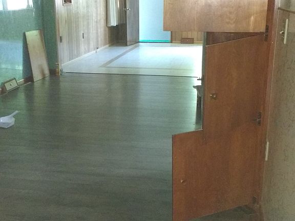 Living room, dining room, kitchen open concept. Main floor laundry, bathroom and also 2 bedrooms on the main floor. Upstairs has 3 bedrooms and a bathroom. Also a basement.