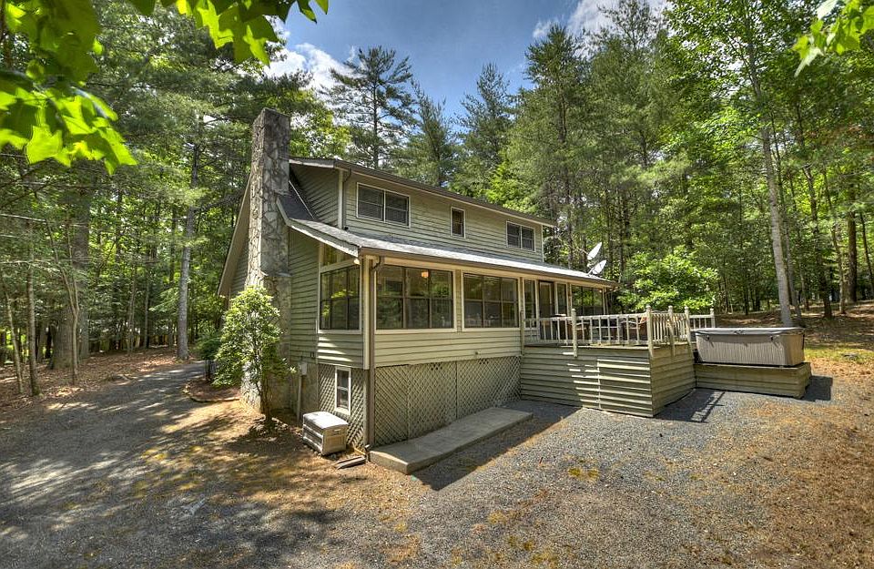 Looking to Escape From The City? Check out this 3 bedroom, 2 bath cabin perfectly situated on 2.49 level acres in popular Blackberry Mountain community. This cabin is just a short walk to beautiful Blackberry Falls. Truly charming featuring warm & inviting great room with wood burning fireplace & wood floors. Open Concept. Kitchen has cabinets galore! HUGE bedroom on main floor, full bath, laundry room, & inviting 288 sq ft sunroom. Upper level has 2 generous bedrooms & full bath. You will love relaxing on the porch, grilling out on the wide open deck, & soaking in the hot tub under the stars. It's time to buy that mountain cabin you've always wanted, this one is move in ready; selling FURNISHED! Plenty of parking & also room to add a future garage; circle drive. Less than 10 minutes to Downtown Ellijay, all paved rds. Quiet neighborhood.