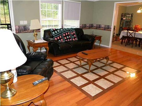 $85,000 515 Jefferson Trace, Dalton, GA.. New roof being installed today. HVAC, carpet, ceramic (4-years Old). 4 bed 3 bath. Lots of customized features, inlayed floor (living room), real wood burning fireplace, ceramic back splash. Huge master bath, large walk-in closet with built-in dresser. FHA qualified home. Plenty of place inside with 2232+/- square footage and the 1.6 acre lot boarders a little creek. Horses are allowed, current owners even had a cow at one time.