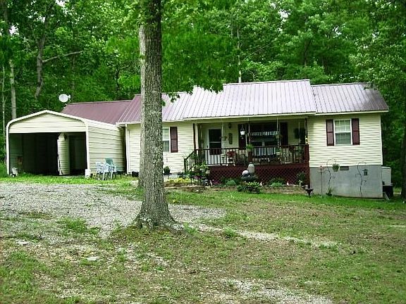 Cottage with split BR plan. Large sun room across the back of the house that is nestled in the trees. Propane stove in LR, new metal roof ,and the outside tank is owned by the owner of this home. Owner financing possible, check with listing agent.