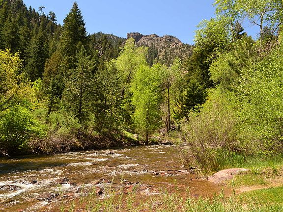 Own land near Eldorado Springs! Beautiful location for year round residence or for a weekend getaway. Great fishing site and access to South Boulder Creek above the private gate past Eldorado Springs Visitors’ Center. Offering two ¼ acres of land as one directly across South Boulder Creek (South side) from 505 Kneale Road (including road easement to a bridge if built). This property is located within a gated community on the west side of Eldorado Canyon State Park which enables free access for property owners and accompanied guests. Any plans for building and bridge going across the creek will need to be resubmitted. Prior plans no longer valid.