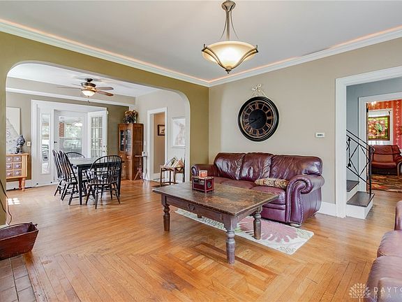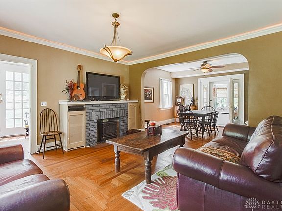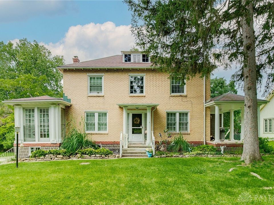 Yesteryear meets modern living! Set on over 1/2 an acre of beautiful landscape featuring lush grounds, mature trees (including a Cherry and Apple tree), woods and a small creek, this Gorgeous 1929 brick home boasts all the charm you could possibly imagine: An oversized Living Room with original hardwoods and big enough to accommodate your large furniture. A fabulous archway leads to the formal Dining Room. A four season enclosed Side-Porch with windows galore and tons of natural light. A lovely country Kitchen with built-in hutch, Island, Kohler kidney shaped farm sink, Gas Cooktop, cabinets Galore and a cute Breakfast Nook currently utilized as an office space with a door leading to yet another covered side-patio/porch with fantastic pillars and ideal for enjoying your morning coffee. Just off the Kitchen you'll find the wonderful Parlor with French Doors perfect for relaxing with your favorite book or beverage. But wait! You won't believe the 22 x 22 enclosed rear Porch with wraparound windows -- an amazing space for family gatherings, game night, or just hanging out in a hammock and catching up on some much needed sleep! A handy 1/2 bath featuring Venetian Plaster and Knotty Pine wainscoting completes the main Level. Upstairs, the charm continues with 3 large bedrooms, crown moldings, a hall bath with clawfoot tub, and Primary bedroom with En Suite and Walk-in closet. There's also a Whole-House Fan with timer that was recently serviced/upgraded this year. A full, unfinished, Walkout Basement with access to the attached 2-Car Garage w/storage and a dedicated shop room completes this fantastic property. Think Country Living/Setting, yet mere minutes away from Shopping and I-70. A must see property, schedule your showing today.