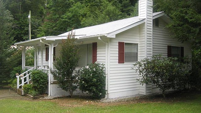 Cute little cottage by a big bold creek. 2 bedrooms and 1 bathroom with all the contents in the house and lawn equipment. Has a dammed up area for swimming and nice waterfall. Has two barns on the land. Has city water. Nice open living and kitchen area. Nicely keep up inside and outside. Would make a great house to live in year around or vacation house. A must see.