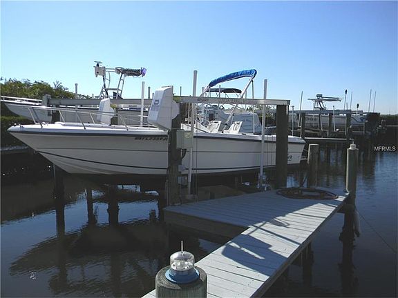 Direct Gulf Access 2 BR/2 BA condo with Manatee River view and deeded boat slip with lift. Upgraded from floor to ceiling! Chef's delight in this kitchen with granite counters and built-in desk space, custom wood cabinets with 42" uppers/wine rack, stainless steel appliances include smooth-top electric range, built-in microwave, dishwasher, trash compactor, under-mount double sink, brand new garbage disposal, bar height breakfast bar, 12 recessed lights, ceramic tile back splash/flooring. Great room features dining and sitting areas with laminate floors, speaker pre-wires and disappearing sliding glass doors to screened balcony with marina and river views where you may enjoy riparian sunrises! King-sized master suite features disappearing sliding glass doors to balcony, laminate floor and walk-in closet. Master bathroom boasts dual vanity and custom tiled double shower with seat. Knock-down finished ceilings, raised paneled doors and custom fit plantation shutters on windows throughout. Duncan boat lift with remote installed 2015. Leisurely boat ride to fishing, waterfront restaurants, downtown Bradenton, Regatta Pointe, Gulf of Mexico and Tampa Bay. Commute easily by car to I-75, St. Pete, Bradenton, Sarasota, world-class beaches, golf, restaurants, shopping. Parks, museums, fine and arts culture nearby. Marina-side community pool with screened cabana. Pet-friendly. Designated under-building parking, storage, outside parking space. Elevator access. Get ready to live the nautical life at River Place!