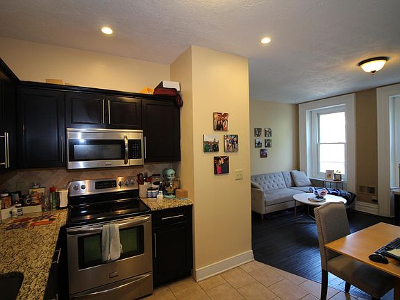 Prime 1 Bedroom, 1 Bath Condo Available for November Occupancy. A Bright and Spacious Living Room with Mahogany Floors Opens to the Updated Kitchen with Accented Ceramic Tile - Located on the 1st Level (2nd Story of Building). The Kitchen Features Stainless Steel Appliances, Custom Wood Cabinets, Custom Backsplash, Custom Lighting Features and Granite Countertops. Full Bath Features Custom Ceramic Tile on Floor and Walls, Colorful Glass Tile Trim and Updated Bath & Sink Fixtures. Recessed Lighting and Updated Light Fixtures Installed Throughout. Central Air Conditioning. Washer & Dryer Included. No Pets! Water + Sewer Included. No Pets. On-Street Parking. Living Room and Kitchen on 2nd Floor, Bedroom and Bath on 3rd