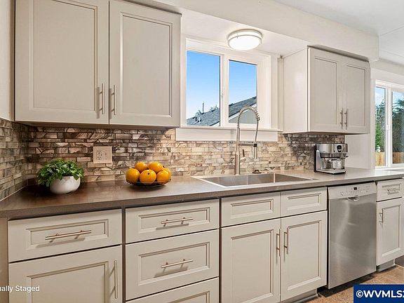 Wonderfully updated 3/1 on corner lot in established desirable South Salem neighborhood! New roof/gutters, new Hardie plank lap siding, new int/ext paint, refinished hardwood floors, tastefully remodeled kitchen w/ quartz countertops, tile backsplash and Marmoleum floor, remodeled bathroom w/ quartz countertop and tile floor, new gas furnace, new vinyl windows, doors and lighting fixtures, new heater ducts, new vapor barrier and under floor insulation - the works! This is a must see!