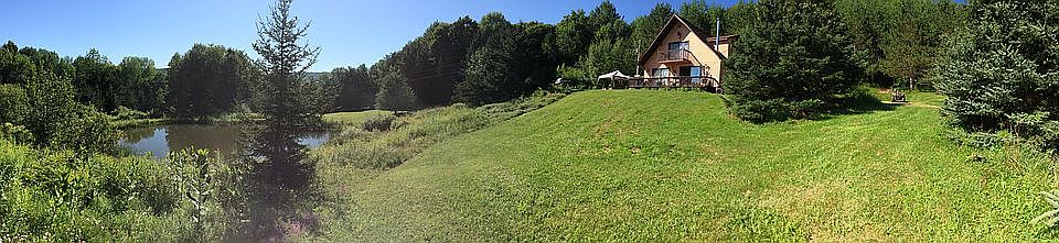 2 bedroom 2 full bath chalet, Hardwood floors throughout 1st floor deck,,2nd floor deck, unfinished basement,carport ,patio with pavers on 20.78 acres with ponds and beautiful valley views privately maintained road.