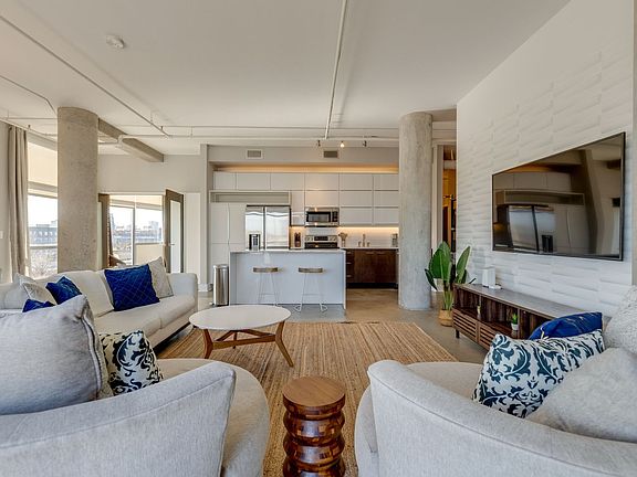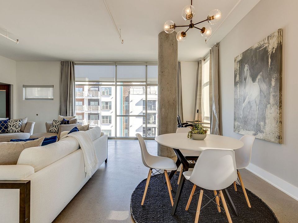 Enjoy the fine details of this beautiful condo with floor-to-ceiling windows, offering stunning views of East Nashville and downtown. This spacious 1,651 sqft two-bedroom, two-bathroom condo ensures you feel at home with its open concept living room that overlooks the kitchen and dining area. Relax on the amazing balcony facing the downtown view or unwind on the outside porch during the night or early morning. The unit includes two dedicated parking spots and gym passes for the in-building fitness center. The condo features two bedrooms, each with a queen-size bed and access to their own bathroom. The open concept living room seamlessly connects to the fully stocked kitchen and dining area, creating a welcoming space for relaxation and entertainment. Linens and towels are provided, and all utilities, including high-speed internet, are included. The condo comes with two dedicated parking spots and gym passes for the in-building fitness center. The building features a large rooftop terrace overlooking downtown, a communal courtyard with gas grills and seating area, and a highly secure garage with 24/7 camera monitoring. Catch a show or a game at Nissan Stadium, just a few minutes' walk away. Explore some of East Nashville's trendiest restaurants and iconic Broadway honkytonks and other venues nearby. Dine at the onsite first-floor eatery, The Mainstay, or enjoy a short drive to Broadway Street. This is a 30-day minimum rental due to HOA regulations. Check-in must be arranged in advance and is available during office hours, with standard check-in at 3 pm. Early check-in or late checkout is available for a $55 charge, subject to availability. A $500 charge applies if physical or odor evidence of smoking is found inside the house. A $250 disturbance fee applies for noise complaints, and a $250 service fee applies if emergency services are called. Pets are not allowed due to allergies, and there is a $100 cleaning fee for glitter or decorations left behind. A $115 lockout service fee applies if locked out after hours. Booking guests must be a minimum of 21 years old, and all guests are required to sign a Resident information packet outlining HOA rules.