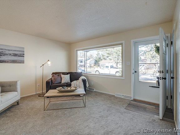 Great home in North Cheyenne! Beautifully updated kitchen, bathrooms and flooring! New carpet, light fixtures, doors & paint! This charming ranch style home would make the perfect starter home or just the right amount of space for those looking to downsize. Covered front porch with picture window and mature trees in the front offering privacy! Spacious covered back patio with additional closed off storage on the side and spacious fenced backyard!
