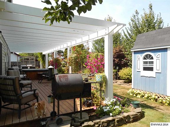 Mt. Angel cutie! Open floor plan with 10ft. ceilings, granite countertops, French doors from master to hot tub and deck, additional electrical outlets throughout home. Outside you will find a RV pad, fenced yard, pergola deck with that hot tub, ponds, underground sprinklers and it is all nicely landscaped!