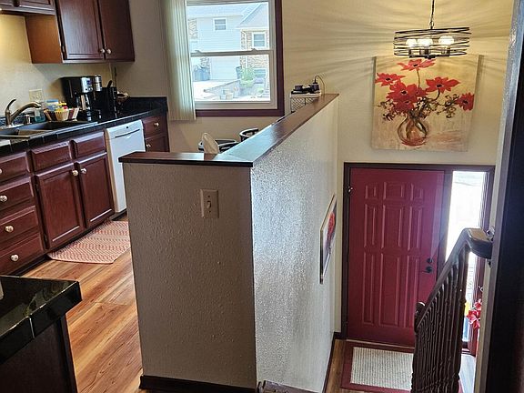 Abundance of updates! All new flooring and paint 2 years ago. 3 newer decks. Newer appliances, central air and water heater. Newer windows, garage door and opener, driveway and roof. Spacious living and dining. Laundry on main floor in updated full bath. Front deck has storage underneath. Upper deck with a great view! 2 spacious bedrooms up. Granite countertop in kitchen. Walk out basement to large maintenance free deck. One bedroom down with large family room, 3/4 bath and large storage room. Steel siding. Fenced back yard which includes a shed, garden area and paver patio/ fire pit area. Seller is a real estate broker.