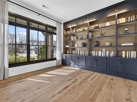 A rare opportunity to own the former Toll Brothers MODEL home in Shirley Estates. This gated enclave of just 45 executive style homes provides exceptional properties and all the desired access to Windward and its full suite of amenities! Enjoy 3 levels of living across this expansive 4 sided brick home featuring a rocking chair front porch as well as a covered rear deck and 3 car garage. Your flat back yard that is gated is perfect for pets, family adventures and building out your dream pool or family oasis. Stepping inside the front double oak doors you're greeted with a 2 story foyer flanked on each side by an office with built-in bookcases and a separate dining room. Moving ahead opens up to the great room that is also vaulted to the second story with a fireplace and built-ins as the centerpiece. The wall of windows allows tons of natural light to flow throughout and bounce off the wide oak flooring. On one side is a powder room as well as a main level bedroom with its own en-suite bath and walk in closet. On the opposite side is a kitchen that would leave any chef jealous with a sub-zero fridge, gas range, ceiling height cabinetry, double ovens and a pantry. The center island and countertops feature beautiful quartz stone. With a view to not only the family room but also a keeping room with another fireplace, this is sure to be a gathering spot for family and friends. If one kitchen wasn't enough for all your cooking needs, there is a second prep kitchen as well perfect for catering events or any meal. Upstairs the oversized owners retreat can easily accommodate a king set but adds a bonus sitting area as well with a private fireplace to cozy up to. The primary bath is a true show stopper with a double walk in and separate soaking tub with marble floors. The walk in closets wraps around and has all of your storage needs. Laundry room also on upper level with a sink. 3 Guest Bedrooms each have en-suite bathrooms and walk in closets. The terrace level is partially finished with a media area, bar space as well as another guest bedroom and en-suite bathroom. Another 1,000 square feet of unfinished space allows the rest to be converted in any way you see fit. In-law suite, golf simulator, game room, movie theater, plenty of space for all options. Back yard is flat and fenced ready for all of your entertaining needs! Shirley Estates provides a close knit community with a park in the back and close proximity to enjoy all of the amenities next door in Lake Windward. Enjoy the community dock at the lake, golf, tennis, pickleball, the dog park or discover the 6-mile circuit or swim the lake. The community is a short drive to Avalon, Halcyon, Downtown Alpharetta, the Greenway, GA-400 for community and top-rated schools are yours to enjoy!
